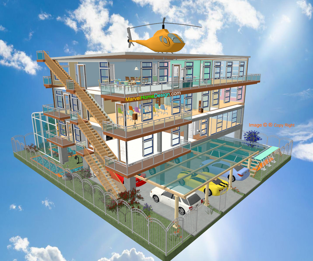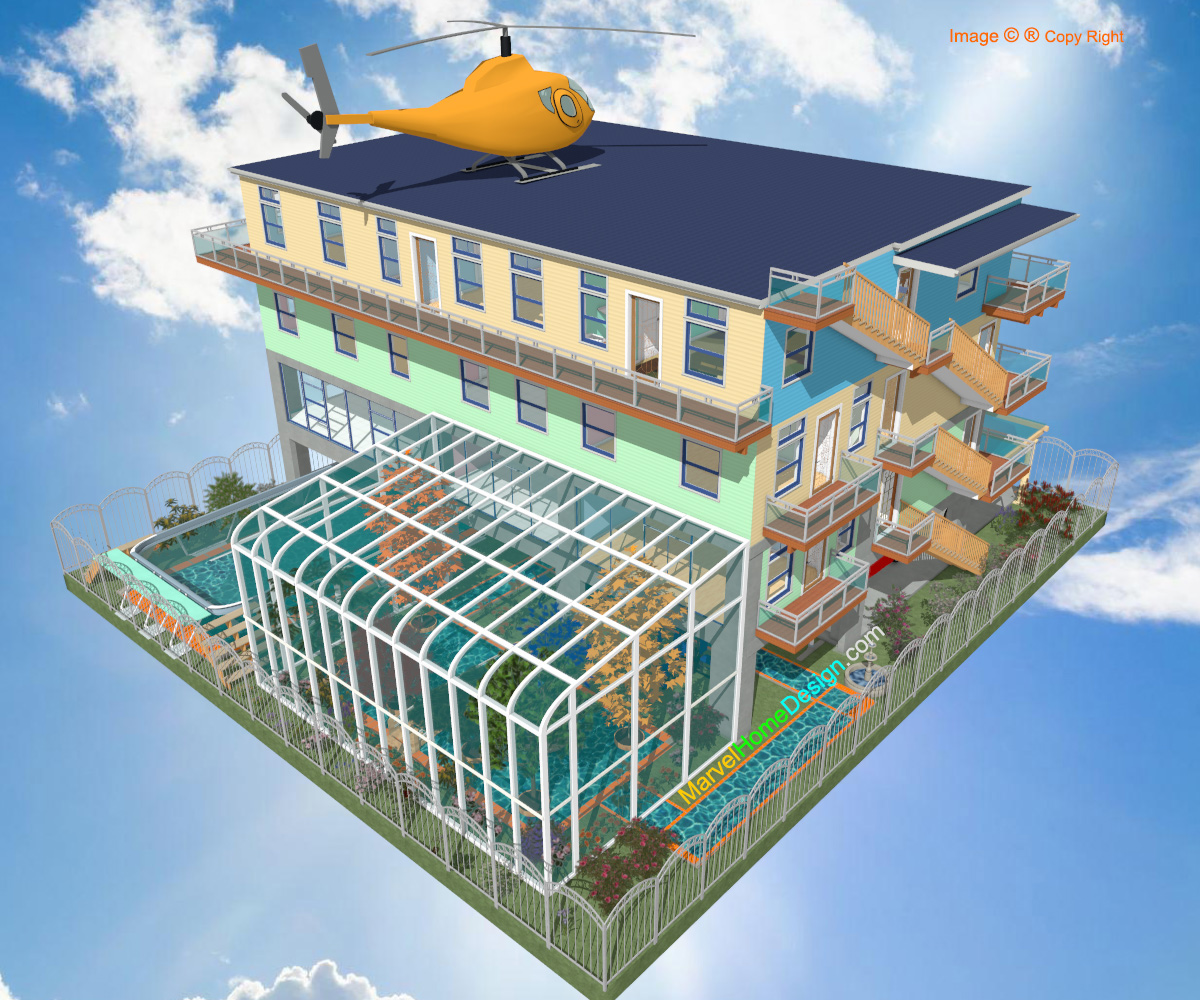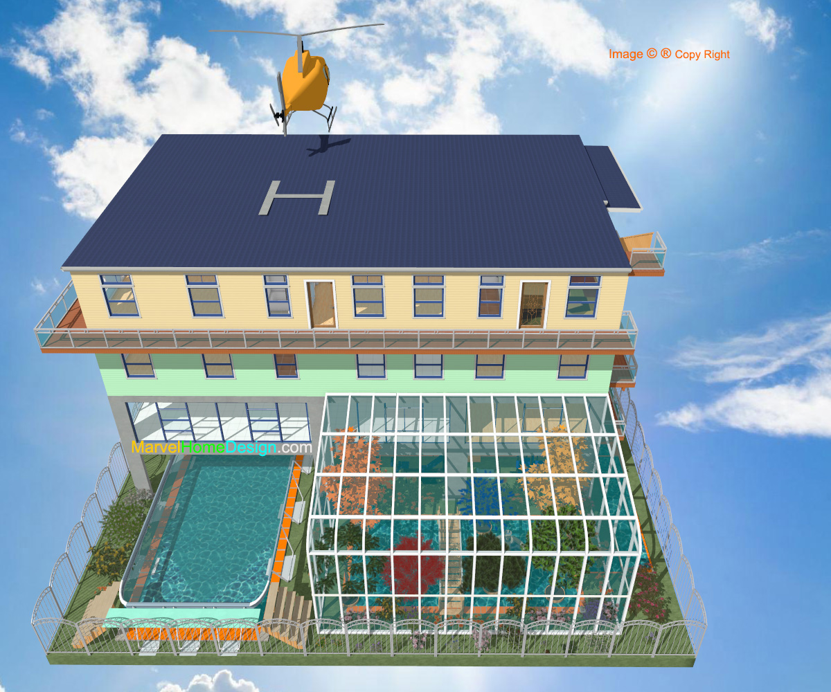 b. Solarium Pool House + 25yd Pool + Heli-Pad